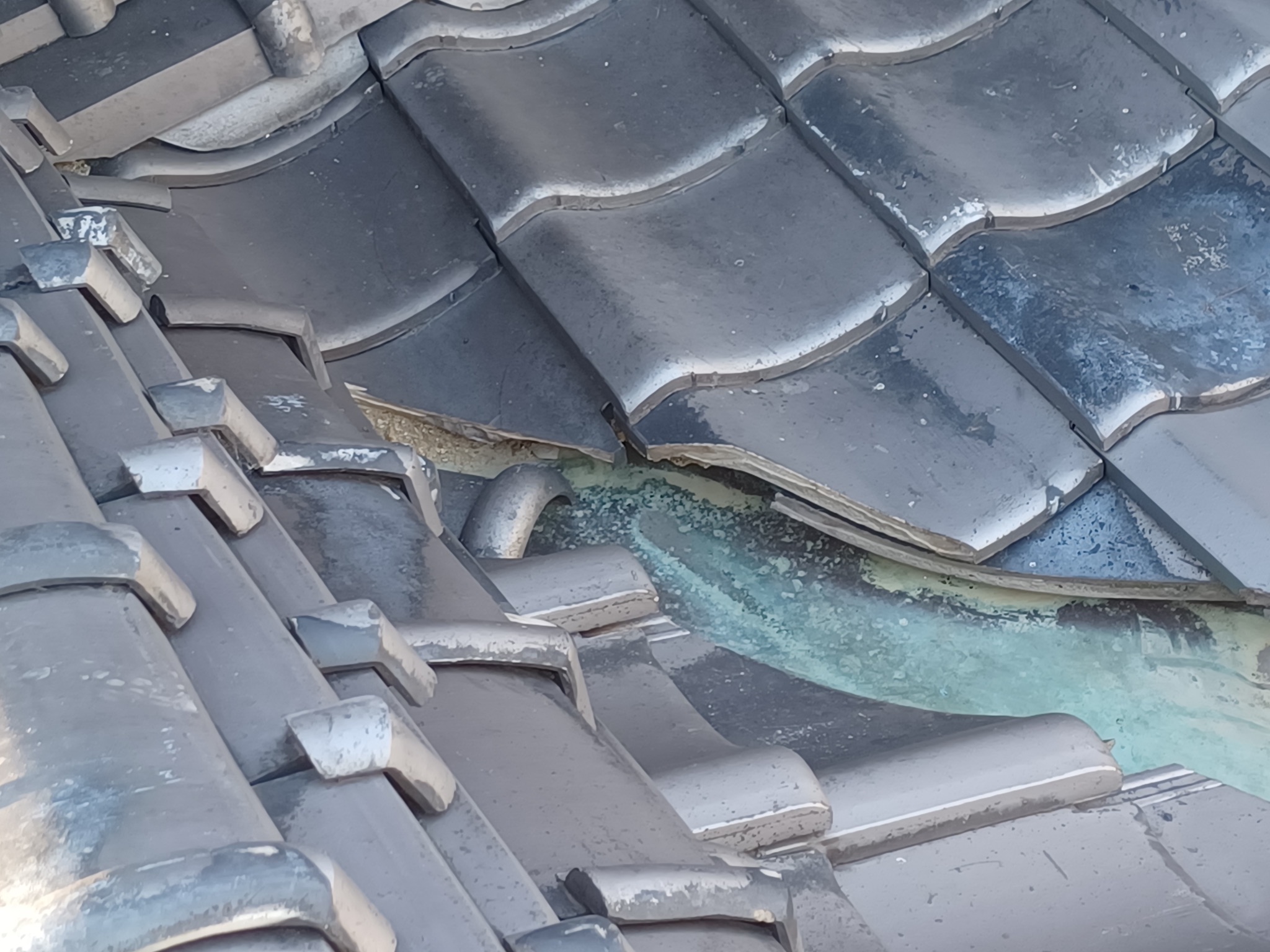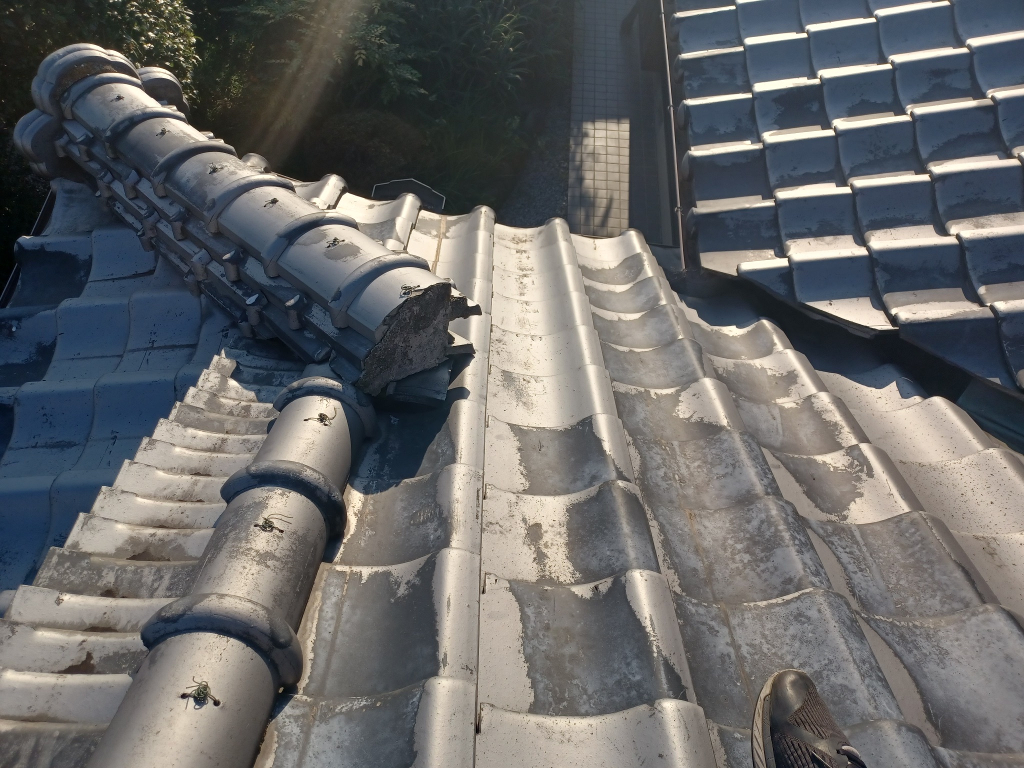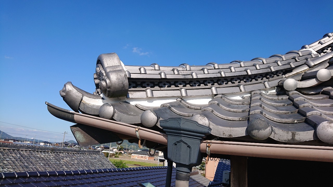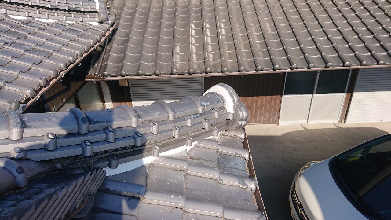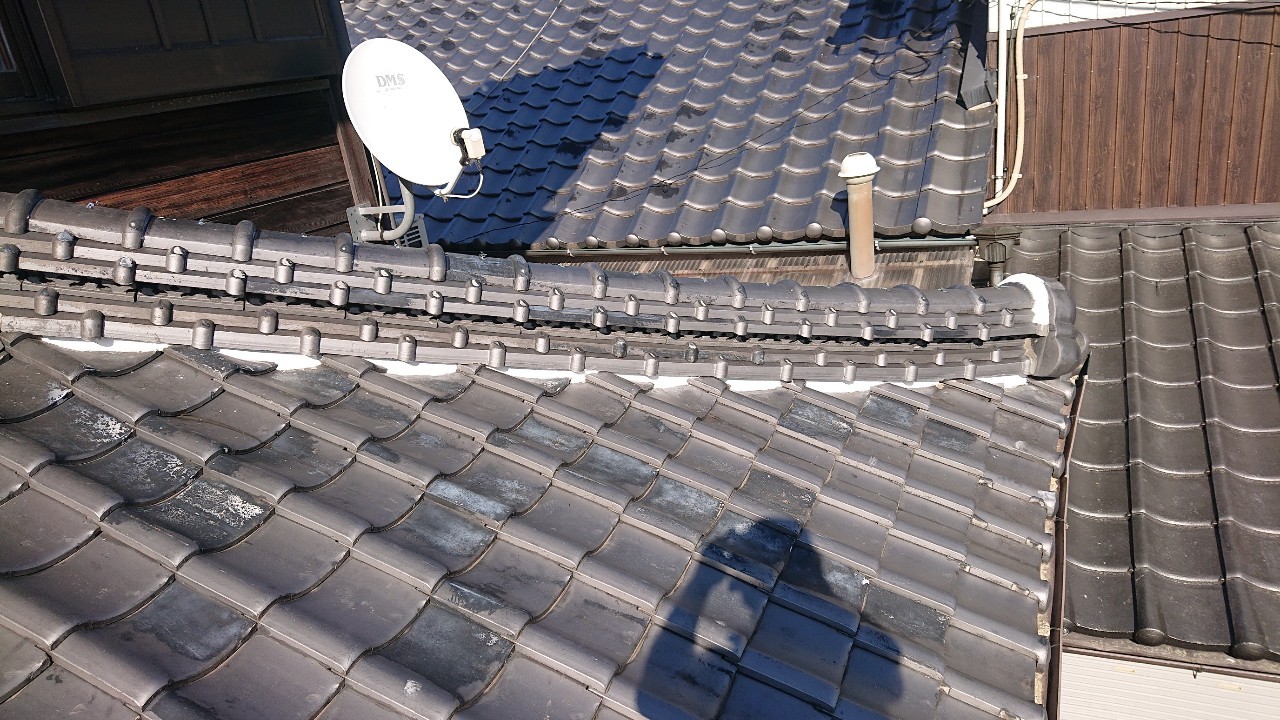 丸亀市にて経年劣化した日本瓦屋根漆喰工事・棟瓦止め工事