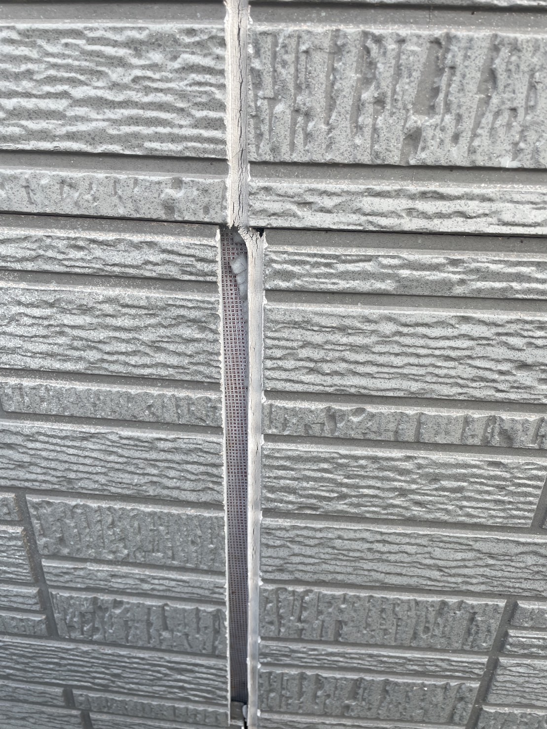 開いている部分の少し上を見ていただくと、コーキングで目地を繋いでいるのがわかりますね。