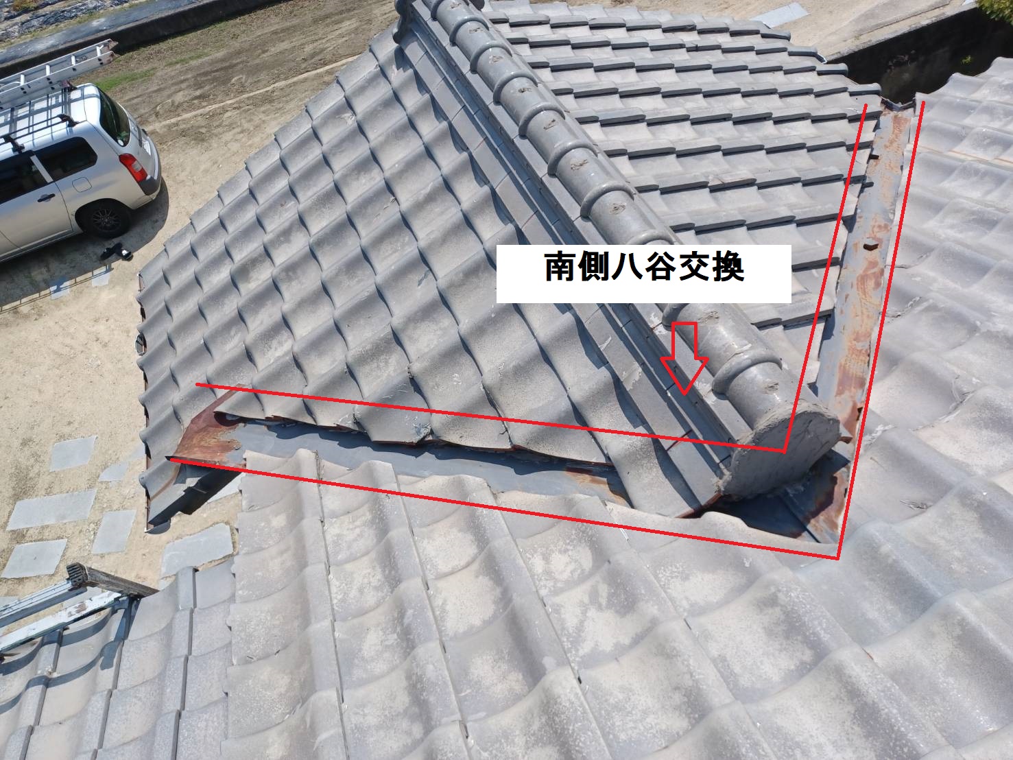 谷板金に関しては修繕が難しいため、今回は交換でご提案させていただきました。また、瓦も複数枚割れていたのでそちらも一緒に差し替えを提案をさせていただきました。点検内容と修繕方法に納得いただき工事をする運びとなりました!