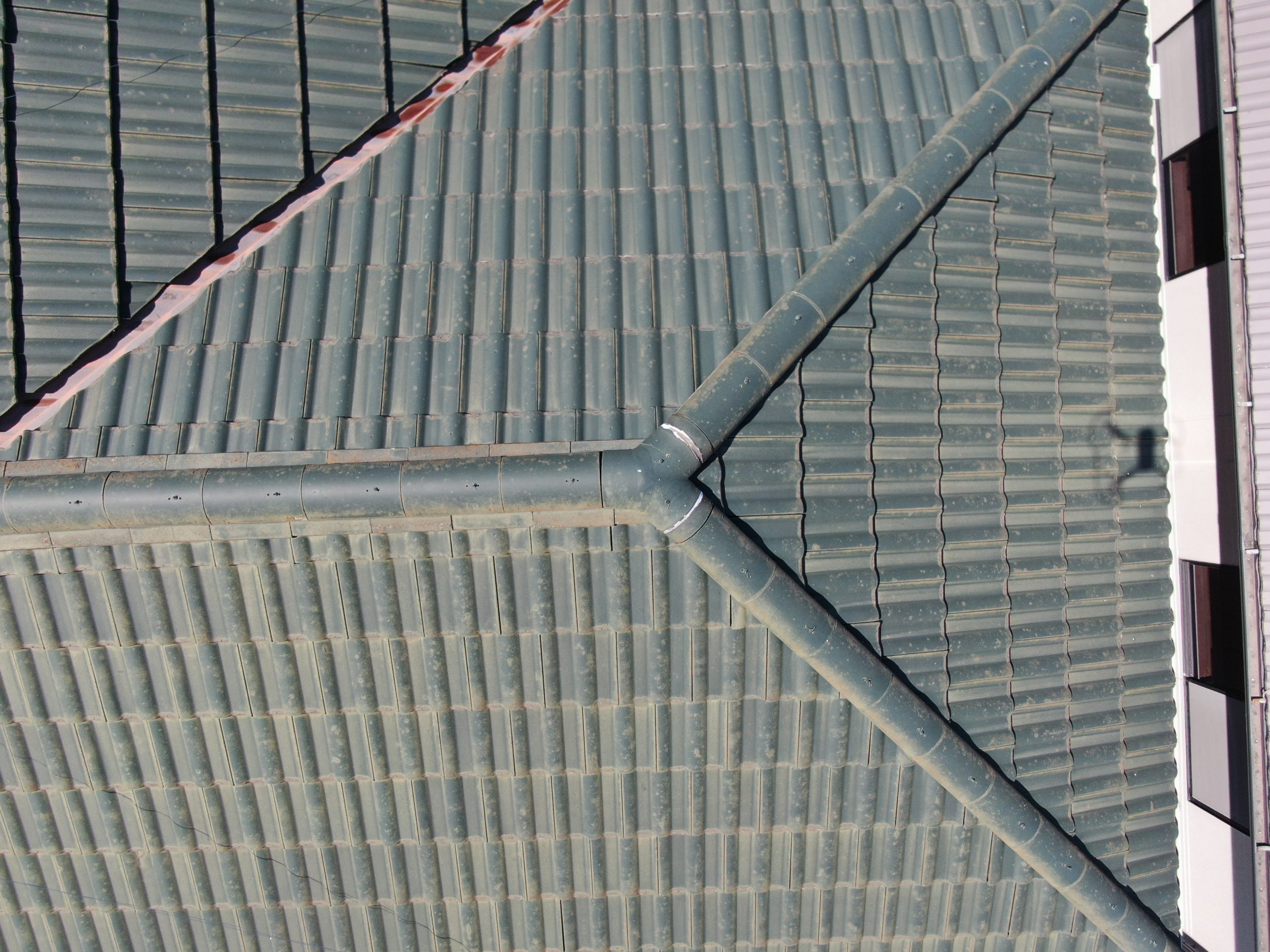 右の写真は三方から集まった棟の部分にしっかり冠と言う瓦があります。