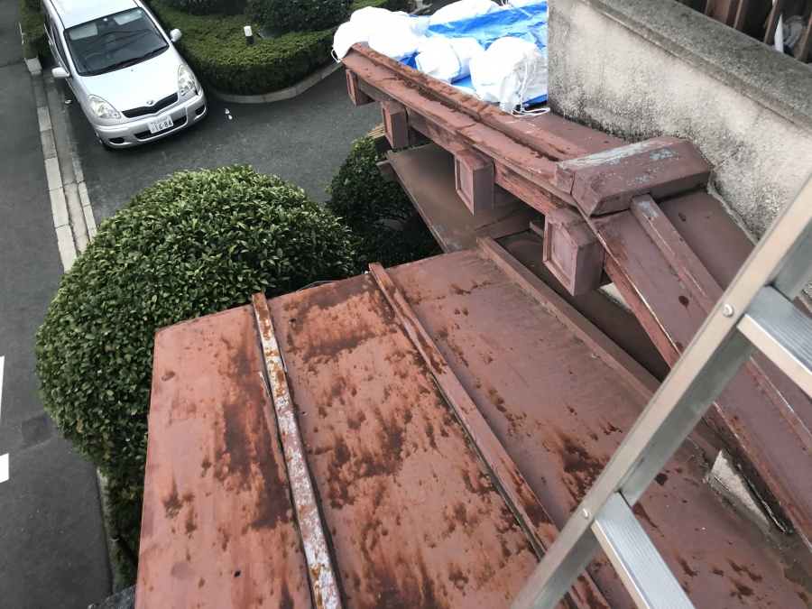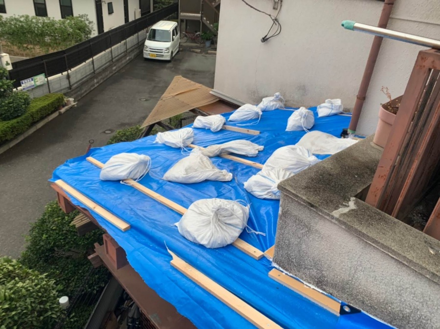 大阪市東淀川区 雨漏り応急処置!崩れた屋根を養生します