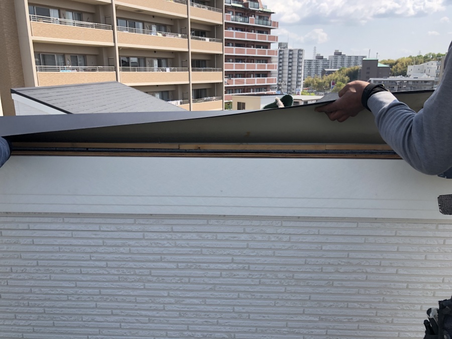 取り外した板金です。貫板は下に降ろしてます。すべて撤去します。
