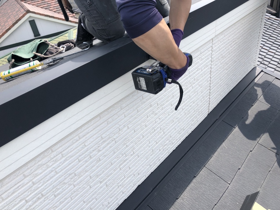 すべての板金を被せ最後に反対側をビス留めしていきます。