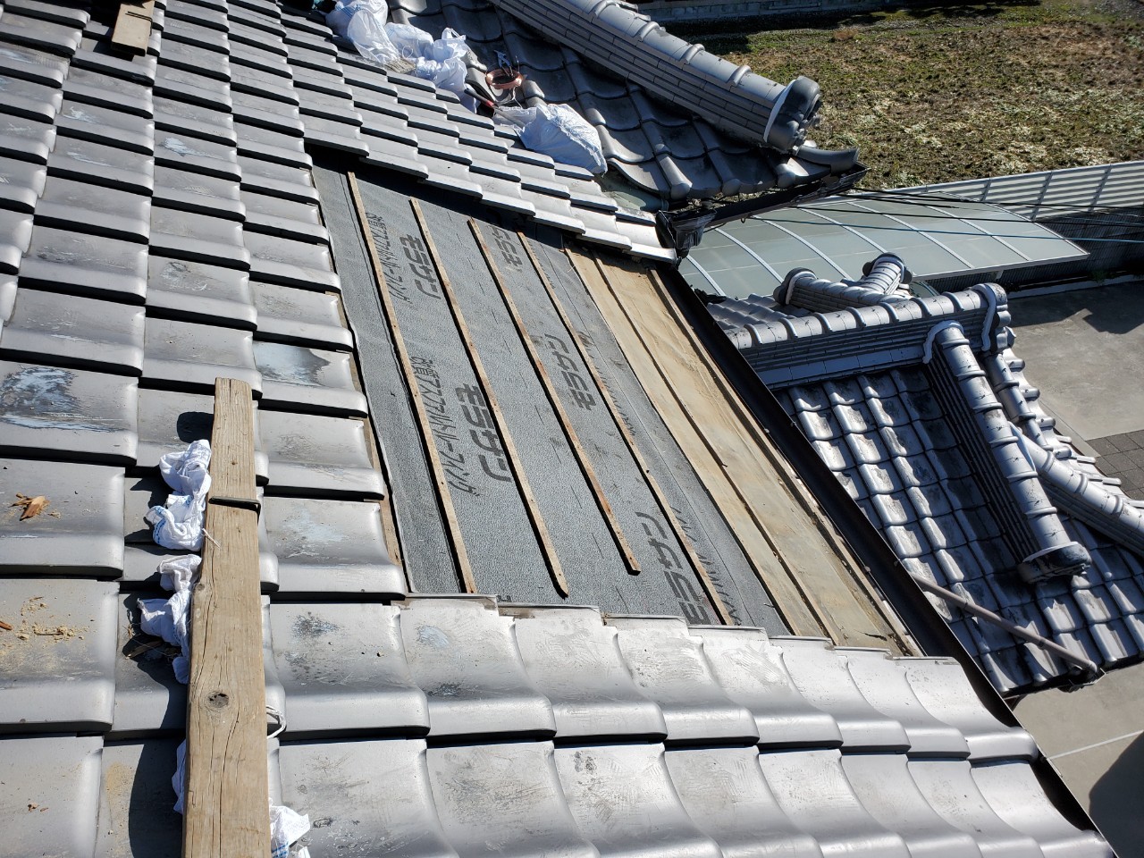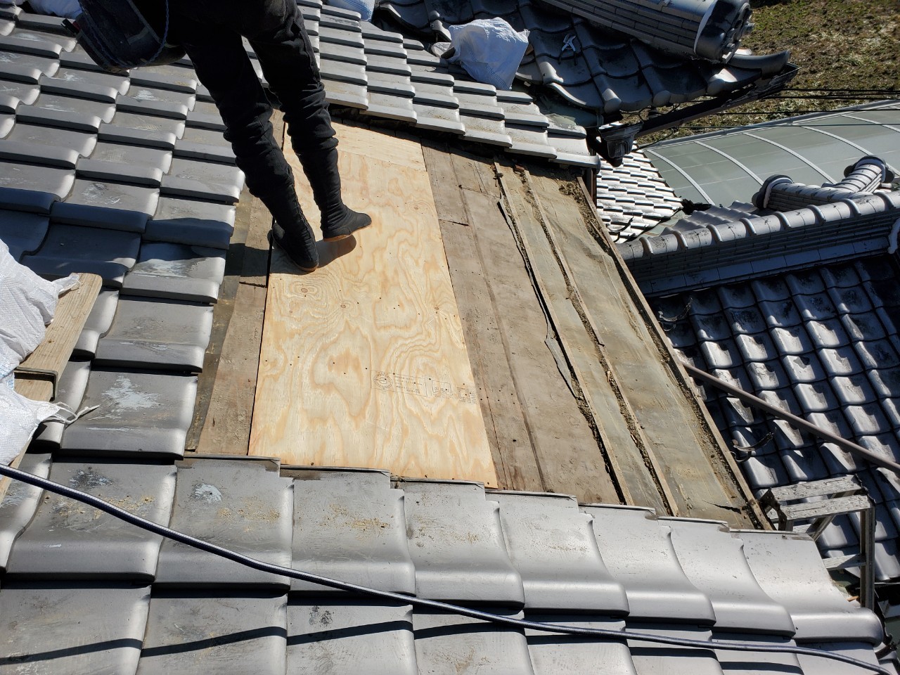 箕面市 屋根修理step1「部分的な瓦、葺き土(ふきど)の撤去」