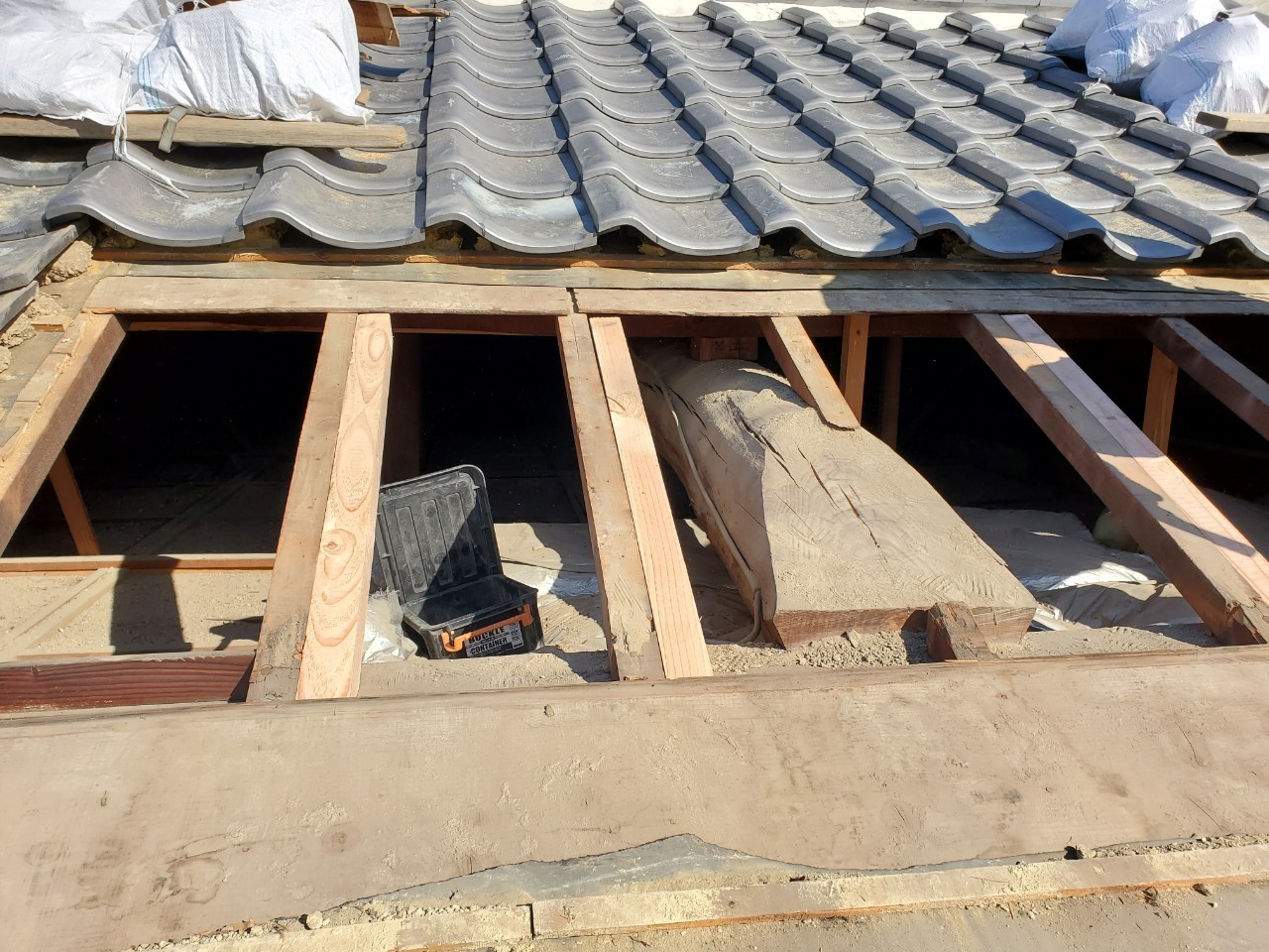 屋根を支える骨組みである垂木がひび割れていては、屋根にのった大量の下地材や重い瓦を十分に支えられません。