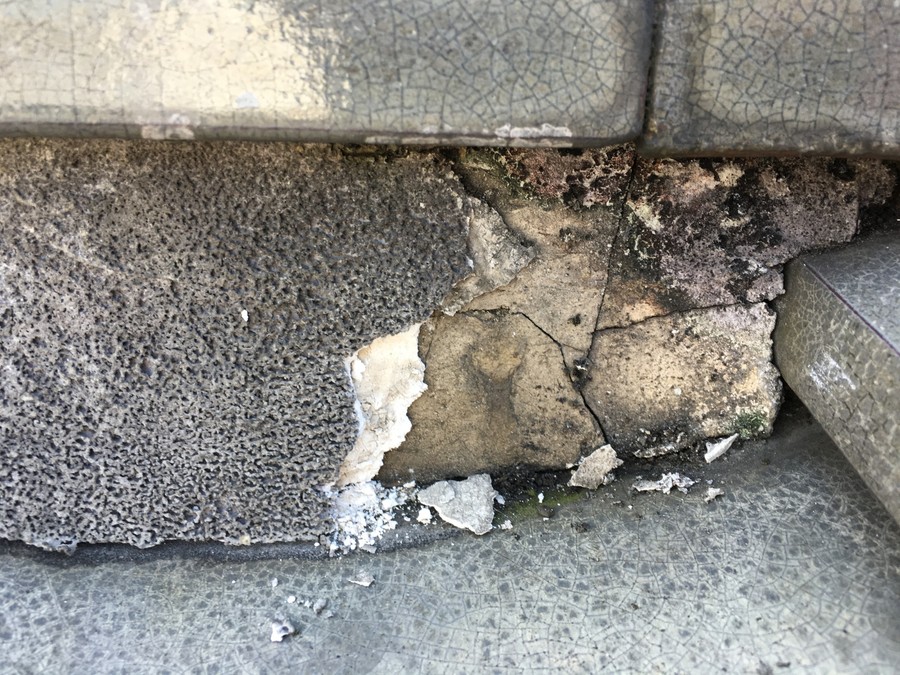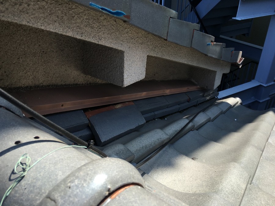 雨仕舞に使用している平瓦がずれ落ちていました。