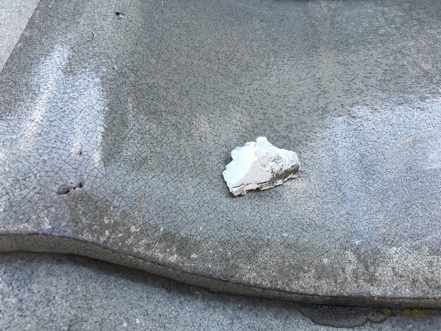あちらこちらに漆喰の破片が屋根上にのこっています。