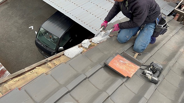 大阪市西成区で屋根葺き直し工事!傷みやすい瓦屋根の端部分を葺き直しました