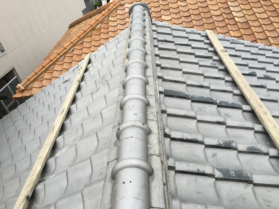 曲がっていた大棟も綺麗に真っ直ぐ積み直すことができました。