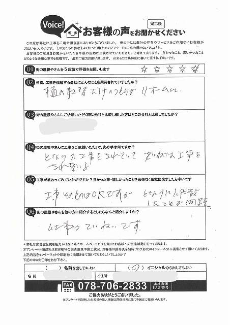 Q:工事が終わってみていかがですか?良かった事・嬉しかったことを忌憚なく頂戴出来ましたら幸いですA:工事そのものはOKですがとなりに飛散したことが問題