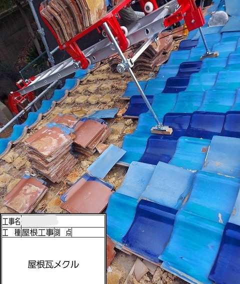 瓦のめくりはじめは作業者は一番上の屋根瓦から始めて、それを取り除きます。