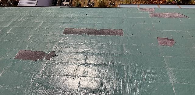 お客様のお悩みは、屋根の塗装が劣化し、ボロボロと剥がれていることでした。
