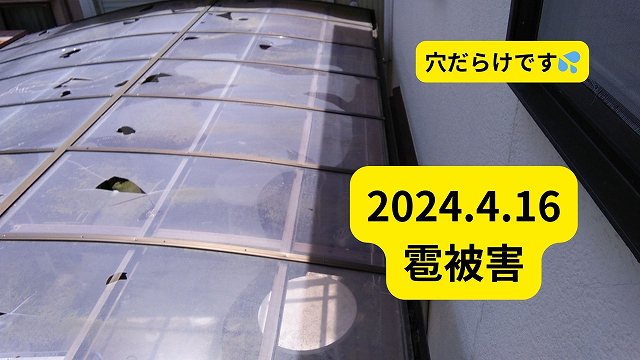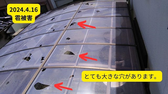 ただ、今回はアクリル板の劣化以前に雹自体のパワーが強かったと推測されます。