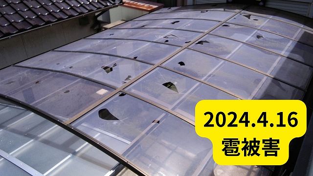 ホーム > 神戸市西区で雹によるカーポート破損現場:4/16に兵庫県南部…