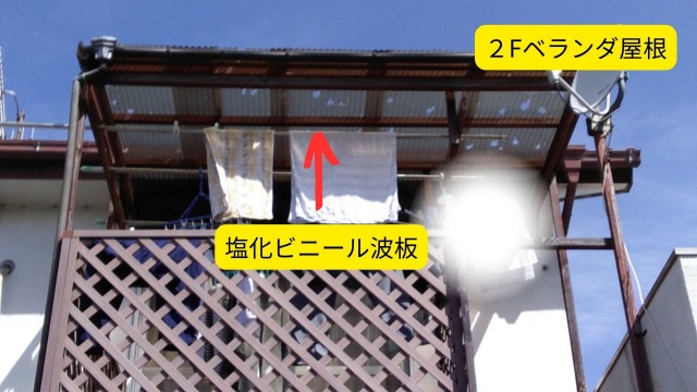 このベランダ屋根は塩化ビニールの波板を使用しています。
