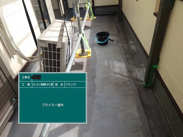 加古郡稲美町でベランダ防水工事を行いました。施工内容はウレタン防水密着工法です