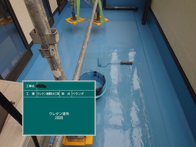 今回のベランダ防水改修工事では、ウレタン防水密着工法を採用。