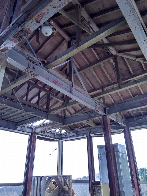 しかし残念ながらこの地は六甲山の最上部で時折突風が吹き屋根材も下地から穴が開いているところもありますので、梯子を持っていきましたが、昇るのは断念しました。