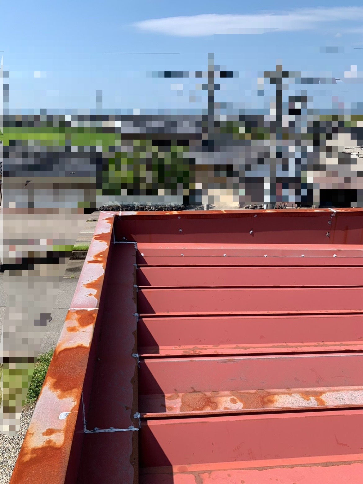 サビが原因で、折板屋根及び各板金部分から広範囲に渡って隙間や穴が空き、雨漏りが発生していました。