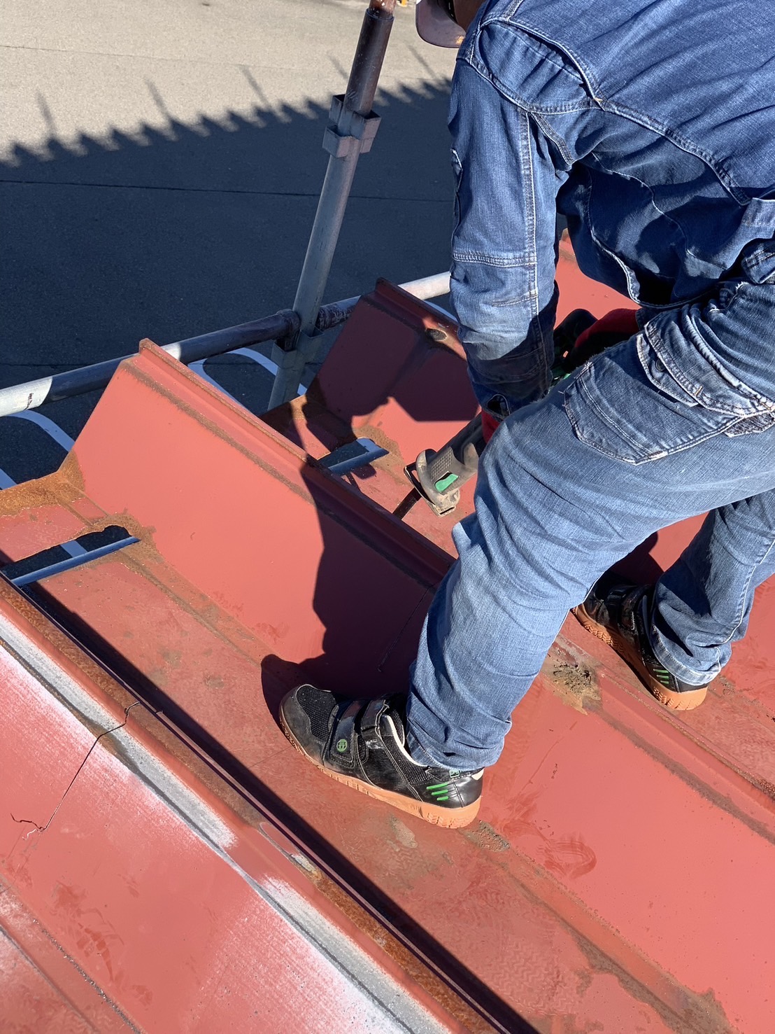 二重葺屋根取付金具)を、既存の屋根に取り付けていきます。
