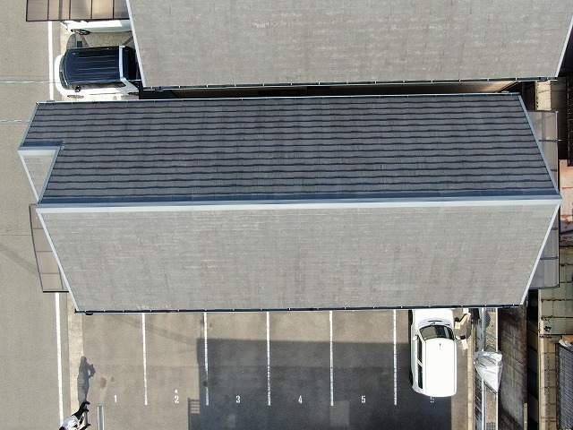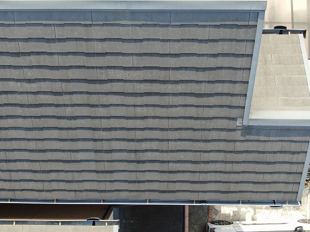 八幡市にて屋根が気になるとのお問合せ。ドローンを飛ばすと塗れない屋根「コロニアルNEO」!カバー工法の提案をさせていただきました。