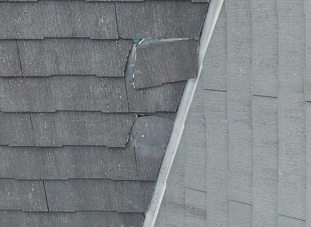南区のお客様からお問い合わせ。屋根の割れた一部が落ちてきたので見てほしいとのこと。