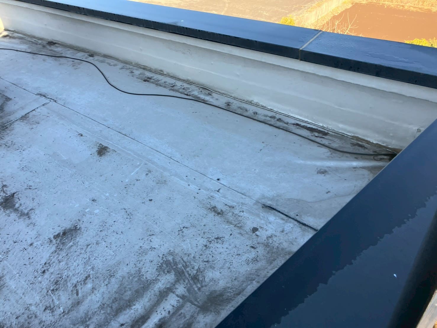防水シートの継ぎ目や入隅部分には、ひび割れや膨れが複数確認されました。これらは防水層の伸縮や経年劣化によって発生するもので、特に継ぎ目は防水の連続性が途切れやすいポイントです。
