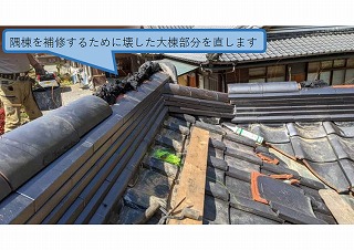 〈隅棟の割り込み瓦の隅切りをしていなかったこと〉と、