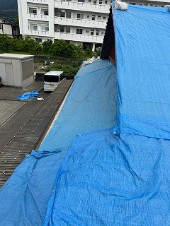 今回の工事対象外の部分には、ブルーシートでしっかり養生をします。
