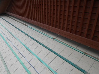 ルーフィングに墨打ちしていきます。瓦を留めるための桟木を打つ位置に墨で目印を付けます。