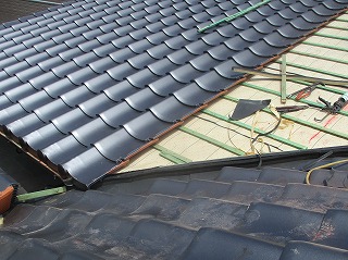 ホーム > 四国中央市で土葺き釉薬瓦から防災瓦への葺き替え|谷部分まで丁…