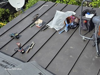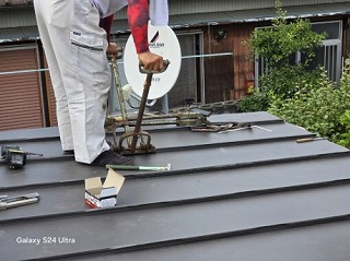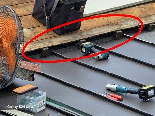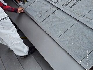 ルーフィング(防水シート)を張り終えたら、ケラバ部分(屋根の両端部)から板金を取り付けていきます。