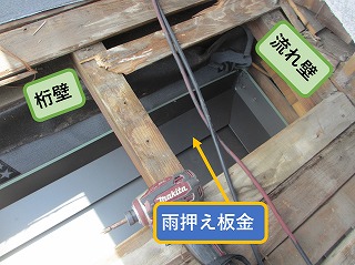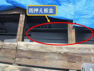 四国中央市で横葺き金属屋根に葺き替え工事。上屋根下の潜り込み屋根部分を施工。