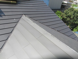 屋根と外壁が交わる「壁際の取り合い部分」の様子です。