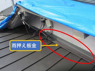 そして、この上から雨押え板金を取りつけることによって、風雨による吹き込みや浸水の心配を無くします。