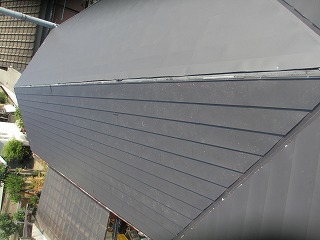 カレッセ本体を棟方向に葺き上げ、ケラバのラインもきれいに通っています。