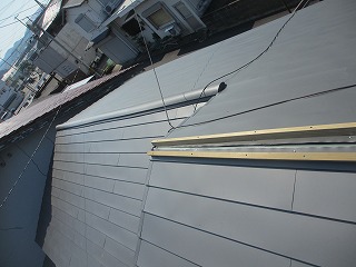 ホーム > 四国中央市で横葺き板金(カレッセ)へ葺き替え。ケラバ、棟部分…