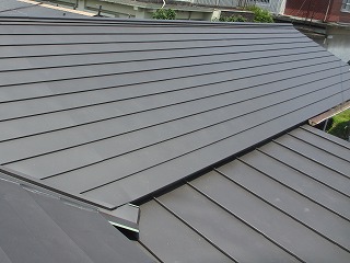 四国中央市で横葺き板金(カレッセ)へ葺き替え。ケラバ、棟部分を施工し、工事完了しました