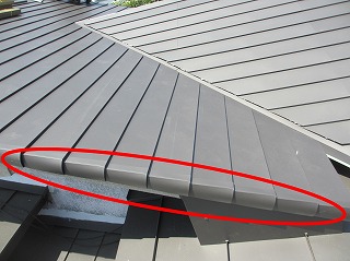 屋根面全体の通りを合わせながら、すべてビスで固定して葺き上げています。