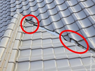 谷部分の瓦がズレたり、割れたりしている箇所がありました。