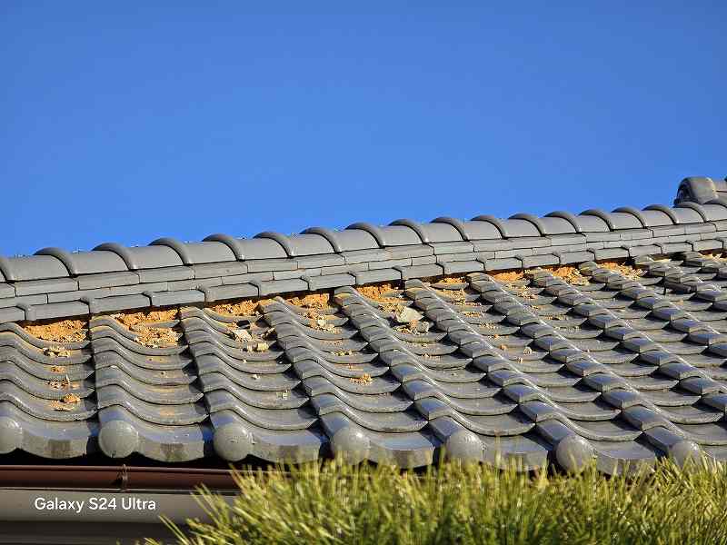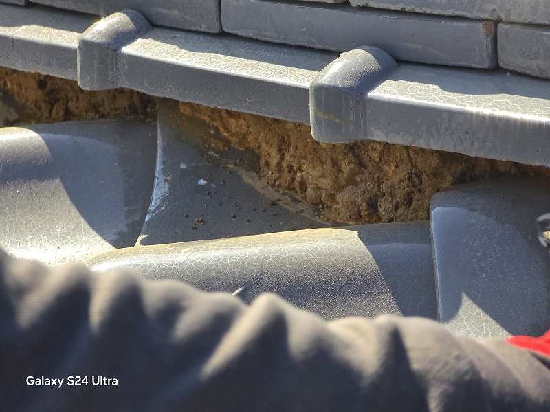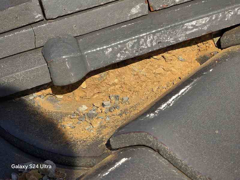 屋根の上には漆喰の欠片や土が落ちます。瓦屋根の上で土を踏むと非常に滑りやすく危険です。