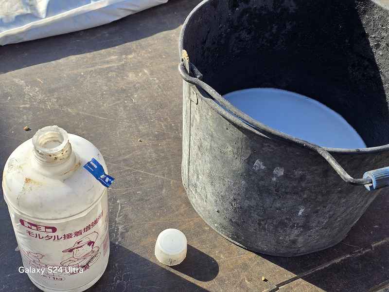 モルタルや漆喰の接着を強くする液を塗っていきます。