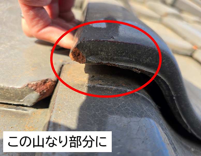 和型瓦の場合、ポイントは「瓦の山なりの部分」にだけコーキングをする事です。