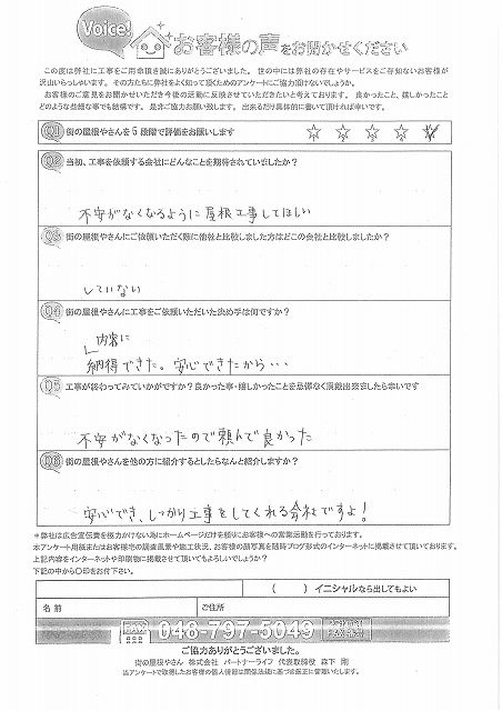 神奈川県のお客様に工事前のアンケートに答えていただきました!