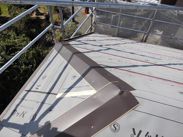 2階建屋根の2階部分(大屋根)に上がり施工状況を確認します、一般的にガルバニュウム立ハゼ葺きはお洒落な屋根というイメージですが、雨漏れも少なく、経年劣化も少なく、お勧めの仕様です。 @455の板を敷き詰めて、中央の凸部(ハゼ) ...続きを読む2021/05/21 経年劣化が進んだ谷板金の差し替え工事がスタート!! みよし市