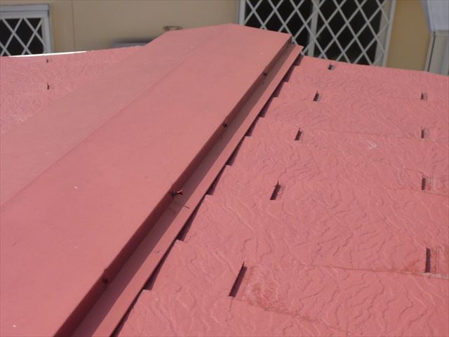 名古屋市南区で築40年以上のお客様から依頼を受け、屋根の点検に登りました。お客様は60代の老夫婦、お二人とも優しそうで、とてもいい人でした。ジュースをいただきました。今日はかなり風が強く、正直屋根に登るのは怖かったのですが、お客様が不安に思ってらっしゃるので頑張って登りました。瓦自体はまだまだ割 ...続きを読む2021/05/21 名古屋市 緑区|瓦屋根のてっぺんは棟板金の仕様になっています。