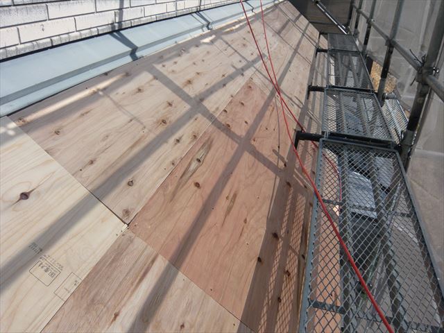 屋根にも、足場がかかり、いよいよ本格的に工事にかかります。まずは、屋根面全体にコンパネという板を張り付けて行きます。元の屋根のスレートがかなり浮いていた為に、不陸調整と断熱効果を高めるためにコンパネを張ります。 通常の勾配であ ...続きを読む2021/05/21 名古屋市|緑区|ドアクローザーの細部まで写真付き交換工事の続きです。③