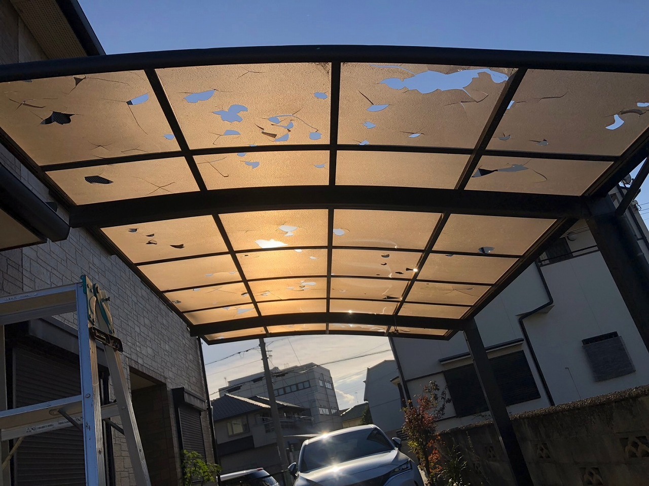 こんにちは!街の屋根やさん金沢南店です🏠金沢市のお客様より、サンルーム屋根から雨漏りしているとのご相談をいただきお伺いさせていただきました! 現状確認 担当者がお伺いさせていただきました! ...続きを読む2025/12/15 加古郡播磨町で雹被害によりカーポート屋根が貫通|火災保険を活用した安心修理事例