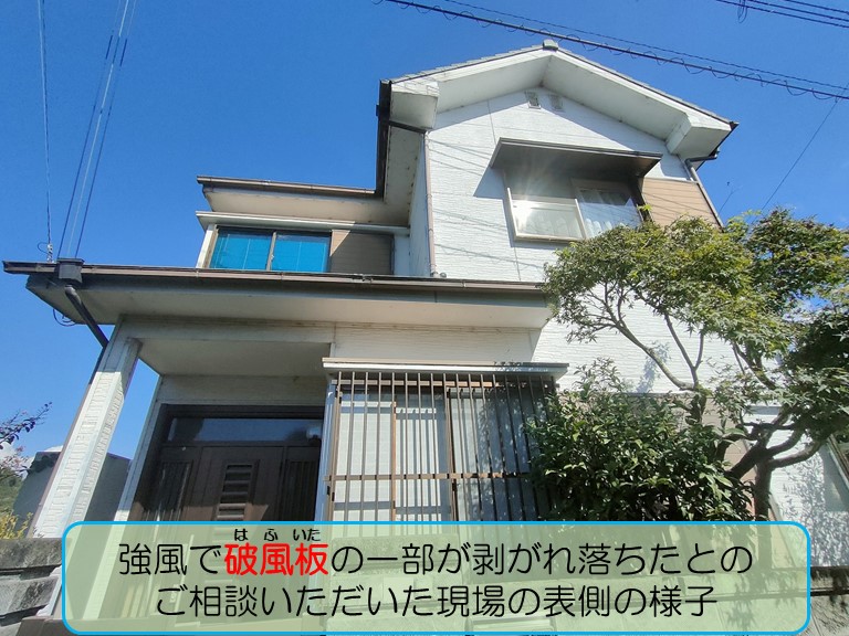こんにちは☼街の屋根やさん岸和田店です。熊取町のT様邸より「強風の影響で🌀破風板(はふいた)の一部が剥がれ落ち、破片が地面に落ちた」とのご相談をいただきましたので、現場調査にお伺いしてきました🚘破風板とは?破風板とは、屋根の三角の部分に山形に取り付けられた板の事で、風や雨の吹込 ...続きを読む2025/10/9 熊取町で強風の影響によりケイカル板の破風板が一部剥がれ落ちた