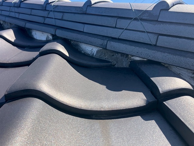 2025/11/13 伊賀市の陶器瓦屋根で棟瓦の割れを発見!積み直しと差し替えリフォーム